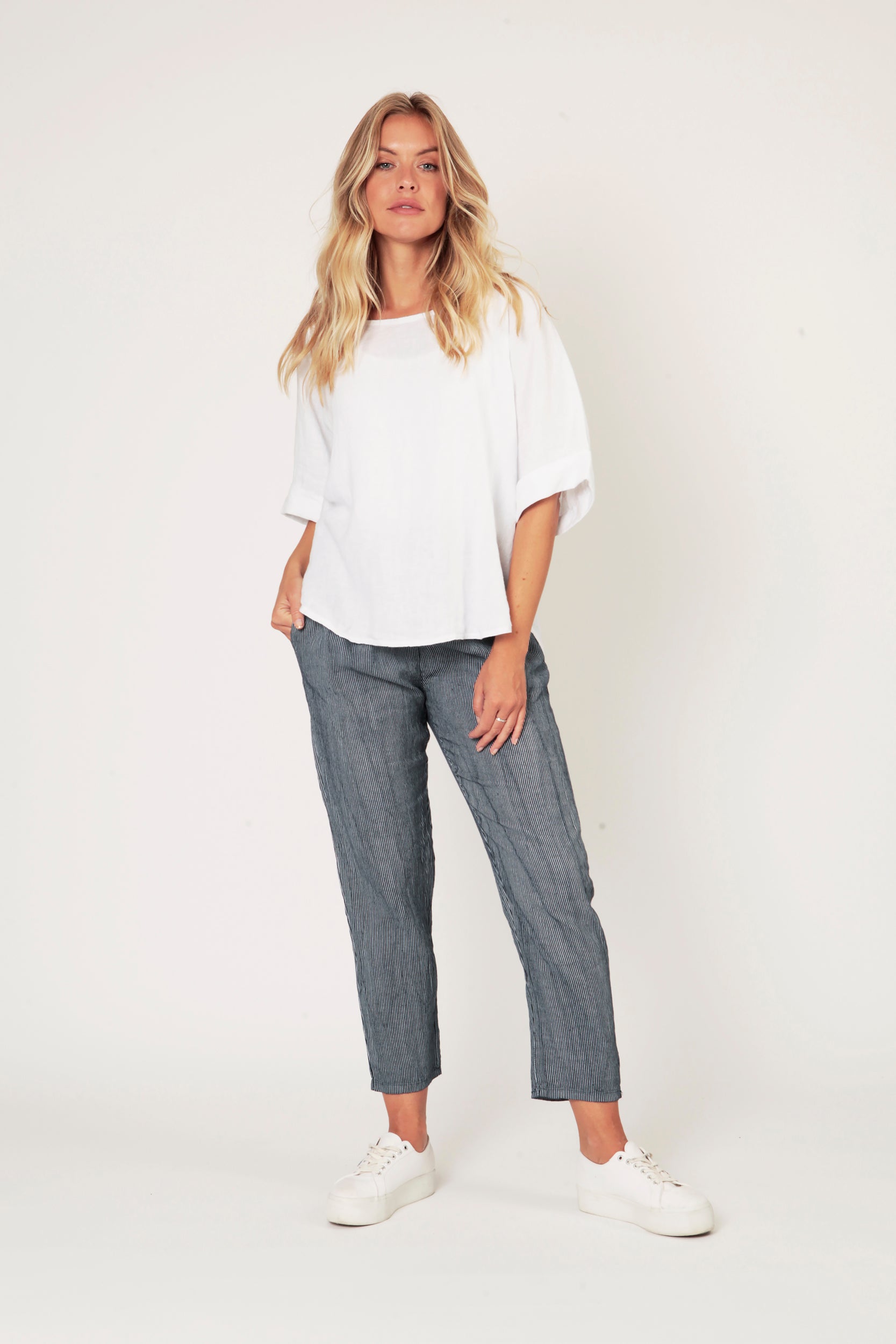Look sharp, but don't take life too seriously in the Sofia Linen Cuff Sleeve Top. This dapper style has what it takes to dress up any ordinary day — it's casual, but still rich in quality. Its flowy, relaxed linen silhouette makes it a perfect summer contender.