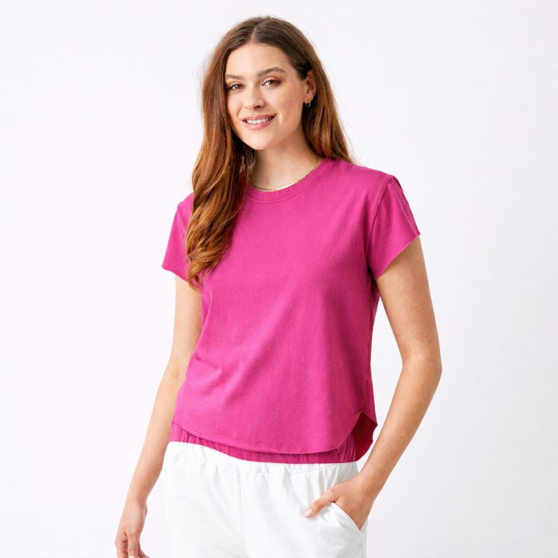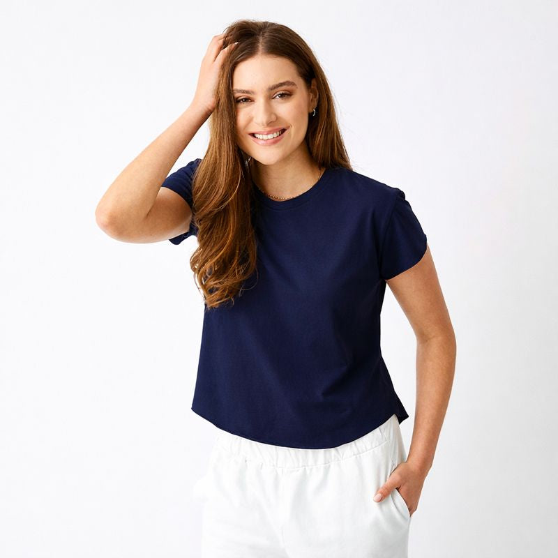 Effortlessly elevate your everyday style with the Wanda Hi Lo Curved Hem Tee. Crafted from luxuriously soft cotton, this versatile piece features a flattering curved hem that dips lower at the back—perfect for layering or wearing solo. Its timeless silhouette makes it an essential capsule wardrobe staple that transitions seamlessly from casual days to dressed-up evenings. Comfortable, chic, and endlessly wearable.