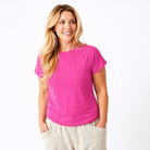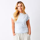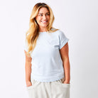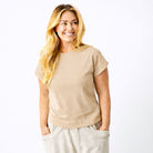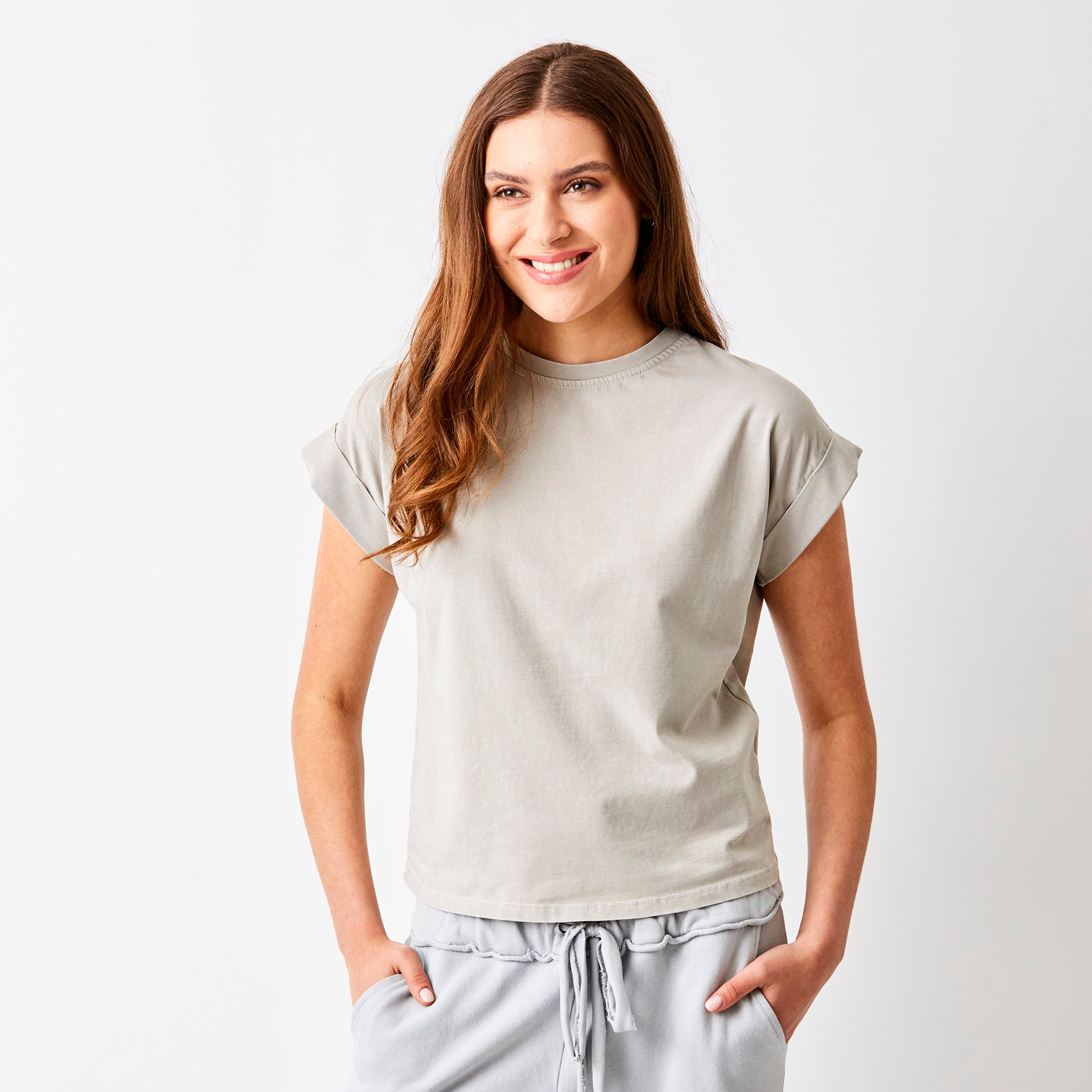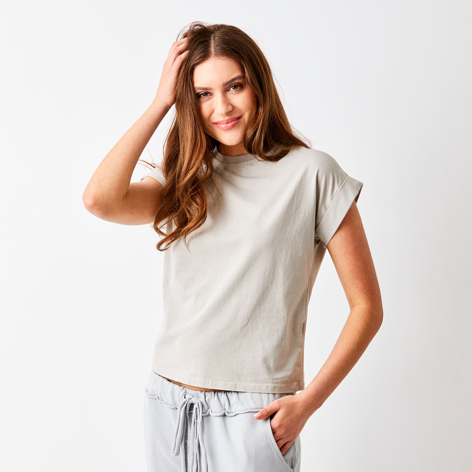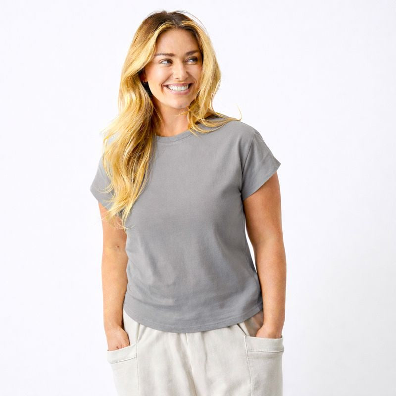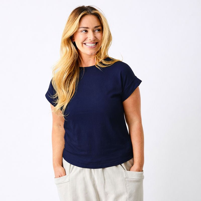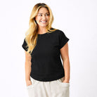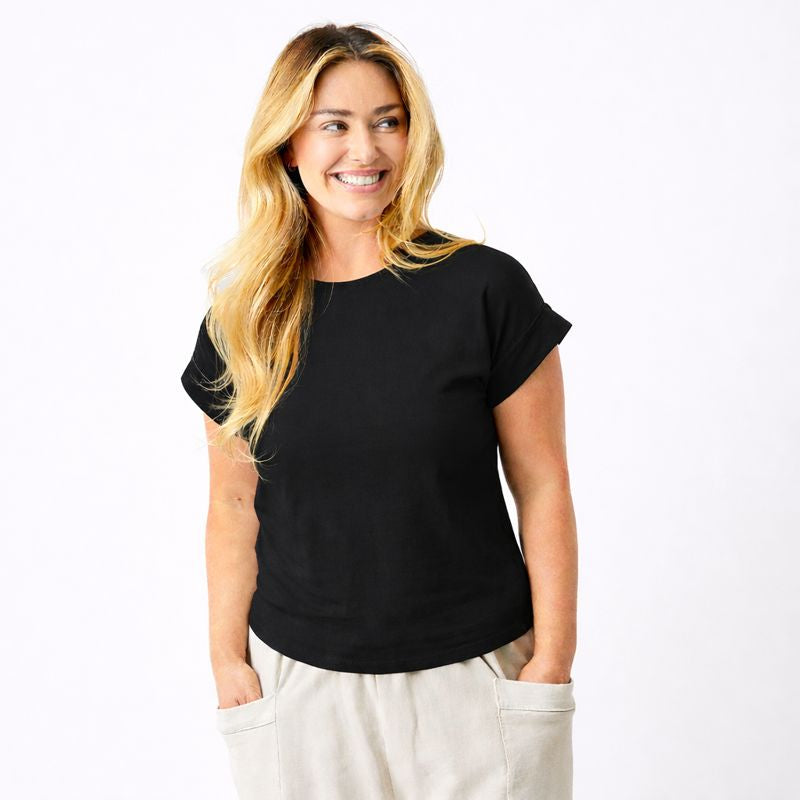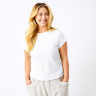 Elevate your everyday wardrobe with the Whiley Crew Neck Tee. Crafted from soft cotton that feels luxurious against your skin, this capsule essential features a distinctive turn-up sleeve detail that adds effortless style to any outfit. Perfect for layering or wearing solo, it's the versatile piece you'll reach for again and again. Timeless, comfortable, and undeniably chic.